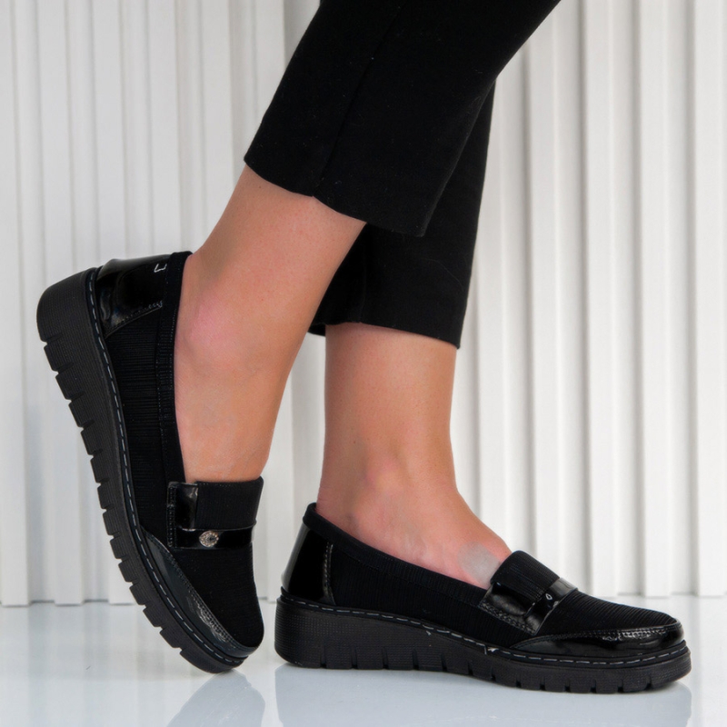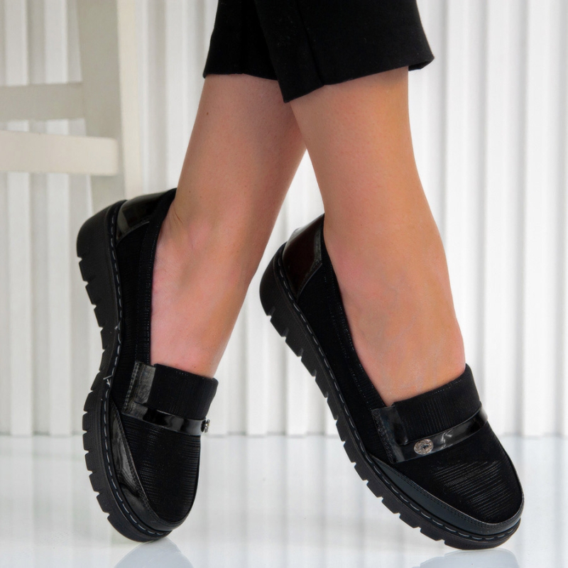 Обувки Stella ще бъдат едно невероятно допълнение към ежедневната ви визия, което ще ви осигури много удобство и добро самочувствие. Изработени са от ефектна еко кожа с малка красива декорация в предната част на обувката, която им придава страхотен чар, а черният им цвят ще помогне за комбинирането им с всякакви цветови схеми.Опция преглед и тест преди плащане.