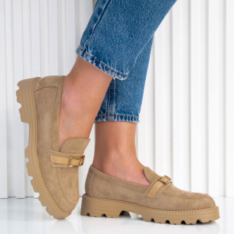 Издигнете ежедневния си стил с дамските лоуфъри Morgana изработени от висококачествен велур в бежов цвят. Страхотно допълнение към вашата визия, с която няма как да не спечелите вниманието на околните.Тези обувки са всичко, от което имате нужда – страхотен външен вид, здравина, комфорт при вървене на дълги разстояния и много лесна поддръжка. Опция преглед и тест преди плащане.