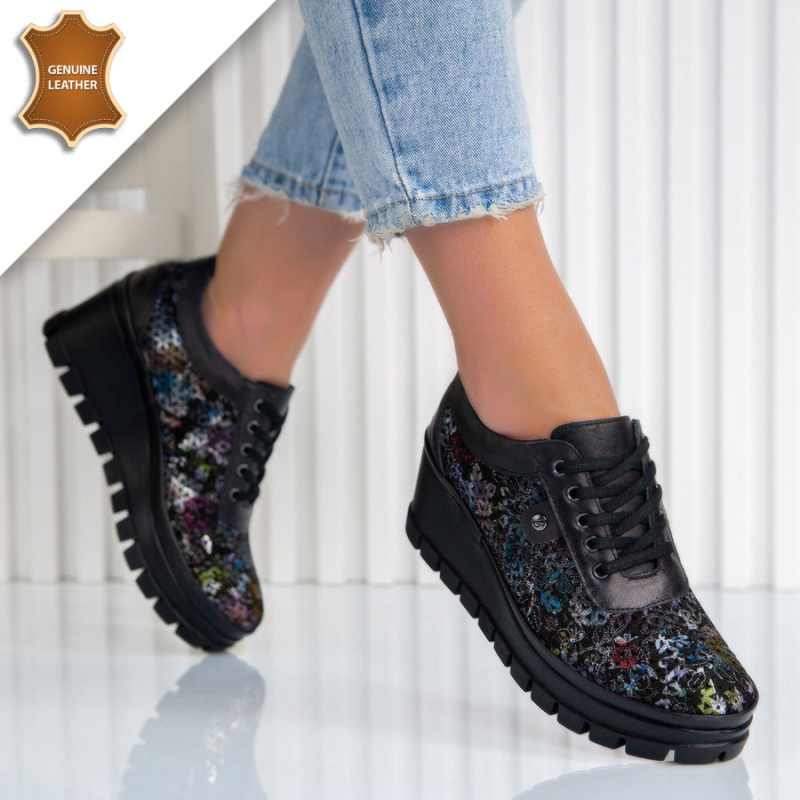 Представяме Ви, обувки Emanuela в прекрасен черен цвят със ефектна кожа, която придава дълбочина, елегантност и луксозно излъчване.Те са изработени от висококачествена естествена кожа. Стелката е мека и комфортна от естествена кожа. Моделът е решен с връзки за по-лесно обуване и събуване. Ходилото е на удобна платформа. Не се колебайте да закупете своя нов модел.Опция преглед и тест преди плащане.Произход-Турция.
