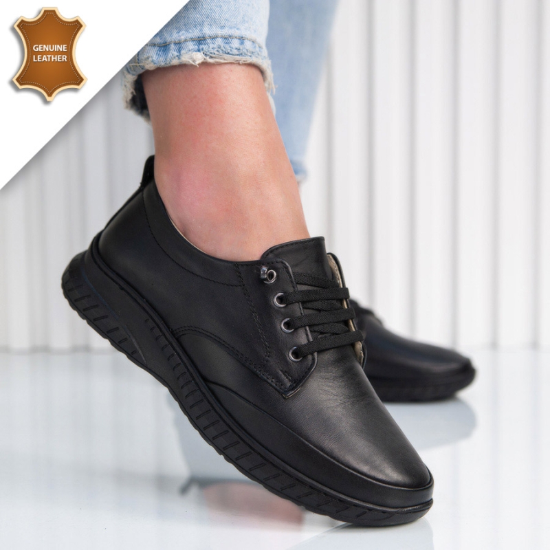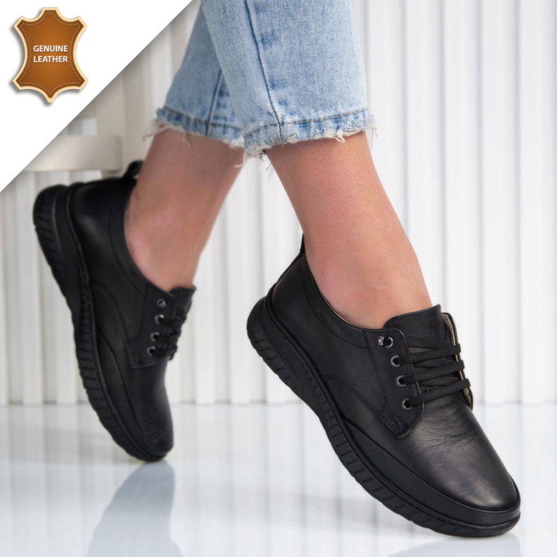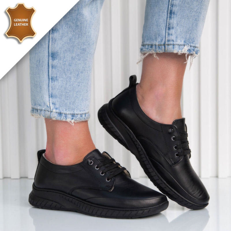 Тези дамски обувки от естествена кожа впечатляват с изчистен и класически дизайн. Изработени са от висококачествена естествена кожа, която осигурява дълготрайна издръжливост и лесна поддръжка, като същевременно запазва елегантния си вид дълго време.Вътрешната част, включително стелката и хастарът, също са от естествена кожа – гаранция за комфорт, добра вентилация и усещане за мекота при всяка стъпка.Практичните ластични връзки с декоративни метални елементи улесняват обуването и събуването.Опция преглед и тест преди плащане.Произход-Турция.