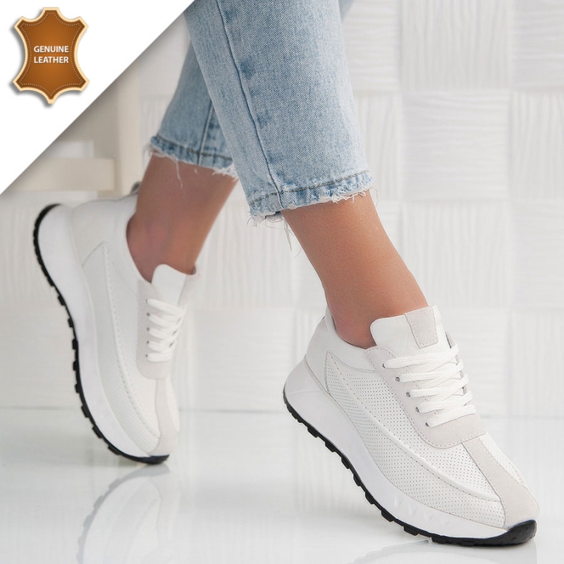 Дамски обувки от естествена кожа. Новото ни предложение за Вас е в бял цвят, което не само допълва всяка визия, но и се съчетава лесно с различни тоалети. Моделът е лек и удобен, носещ комфорт през целия ден.Опция преглед и тест преди плащане. Произход-Турция.