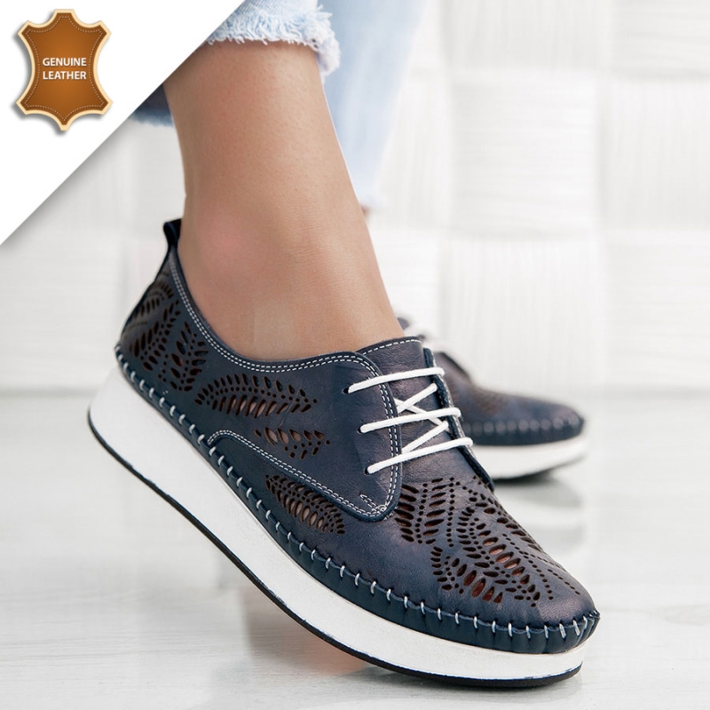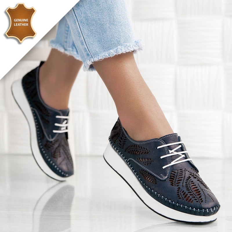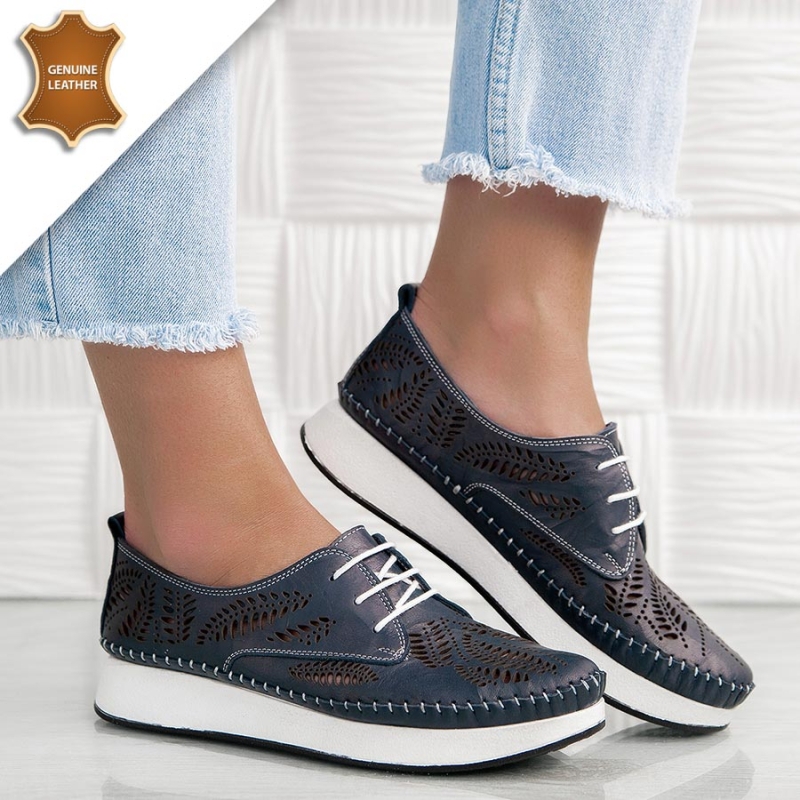 Придайте настроение на всеки свой ден с помощта на тези модерни и ефектни, ежедневни обувки от изцяло висококачествена естествена кожа, изключително мека и приятна на допир. Вградена въздушна система за комфорт и удобство. Решени са в син цвят. Дизайнът е създаден за пролетно-летните дни и лазерната перфорация на крака за да диша. Моделът се закопчава посредством връзки. НОМЕРАЦИЯТА НА МОДЕЛА Е СЛЕДНАТА: 36-23 см, 37-23,5 см, 38-24,5 см, 39-25 см, 40-25,5 см, 41-26 см, 42- 26.5 см. Произход-Турция.
